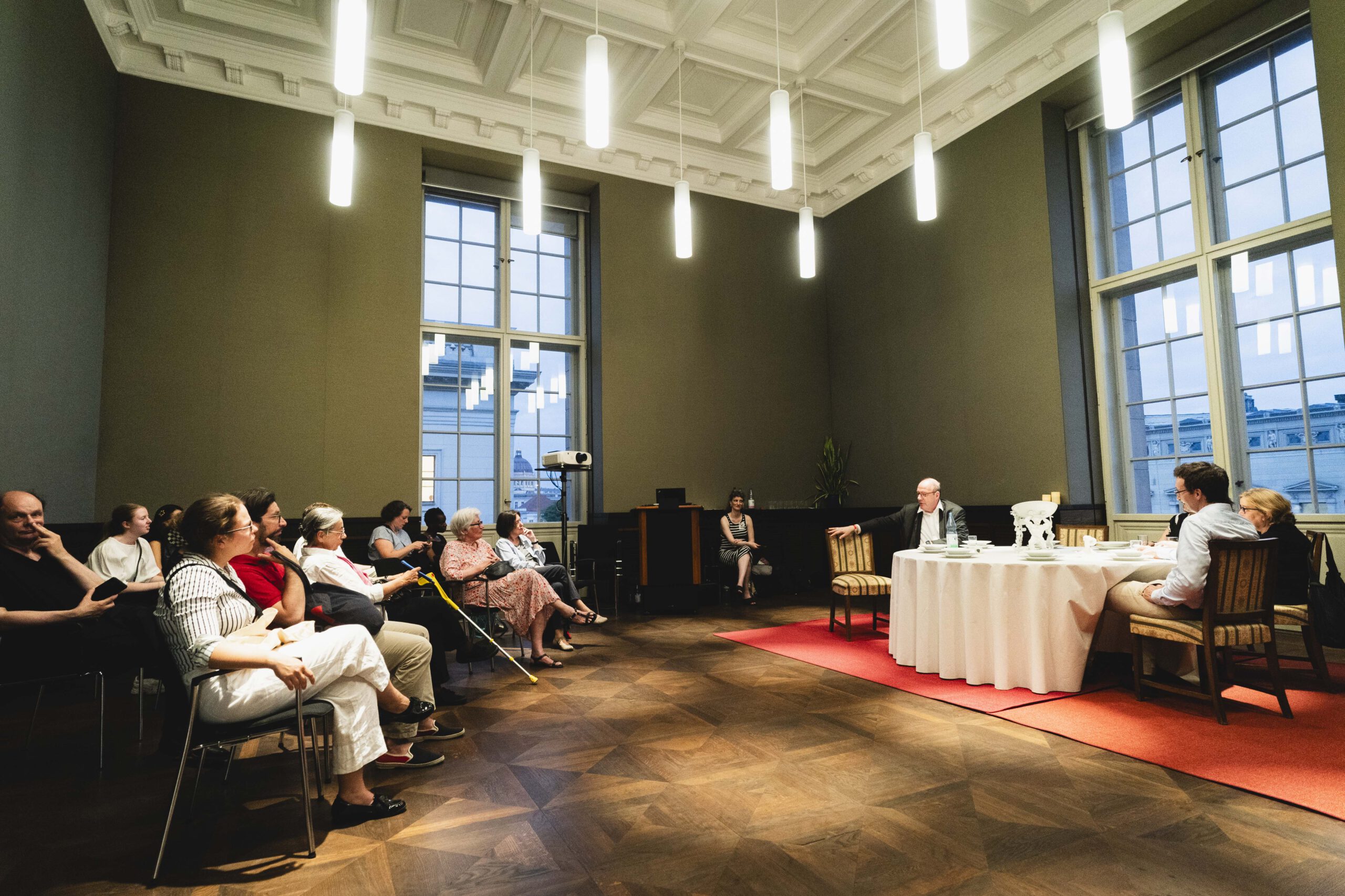 Es wird ja oft zu lang geredet, aber dieser Unterhaltung hören Sie bestimmt gern zu! Während der Langen Nacht sitzen Mitglieder der Akademie mit Menschen aus der Stadtgesellschaft zusammen und unterhalten sich über die Geschichte der Wissenschaft, Forschungsthemen, ihre Konflikte und die der anderen. An einem runden Salon-Tisch, an dem sogar das Porzellan, geschaffen von der Künstlerin Rona Kobel, einen Kommentar auf die Gesellschaft liefert. Laufend ändert sich die Besetzung und damit die Themen – und vielleicht möchten Sie auch selber aktiv einen Beitrag einbringen!